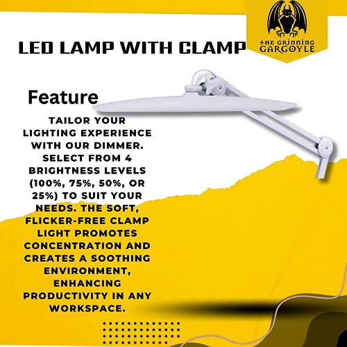 - MASTER YOUR WORK WITH 4 MODES – Choose from four lumen intensities: 100%, 75%, 50%, and 25%. Whether it's intricate craftsmanship or detailed reading, our rebel LED task clamp light adapts to your needs, providing unparalleled lighting control.
