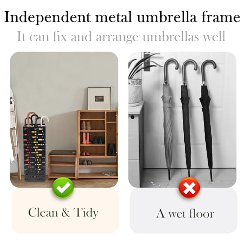- Make Your Entryway Neat: The compact design of our metal umbrella organizer helps save space while keeping your room entrance neat and organized. With this stand, you no longer have to worry about wet floors on rainy days or cluttered spaces during sunny days.