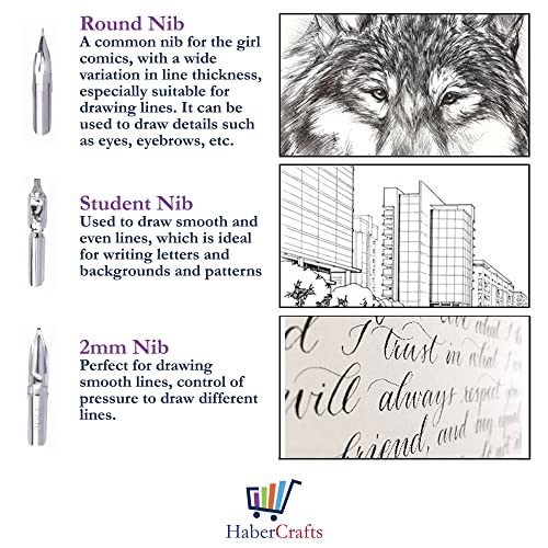 - The 3 Stainless Steel Metal Nibs Are Easy To Clean, Corrosion & Rust Resistant & Include, The Round Nib (Perfect For Shojo Manga, With Line Width Being Variable), Student Nib (Perfect For Drawing A Smooth And Even Line, Great For Letter Writing, Background & Pattern Drawing) & 2mm Flat Nib (Perfect For Drawing Smooth Lines, Control Of Pressure To Draw Different Lines).