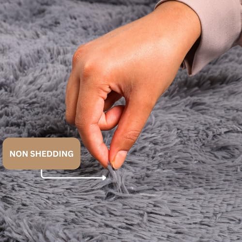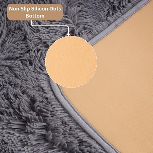 - NonSlip Bottom: This rug material is made of high quality polyester. This cozy and comfortable faux fur rug creates a welcoming space and peaceful feeling in the bedroom, promotes a warm, luxurious and cozy ambiance. The nonslip bottom keeps the rug in place as much as possible and can be used in high traffic areas.