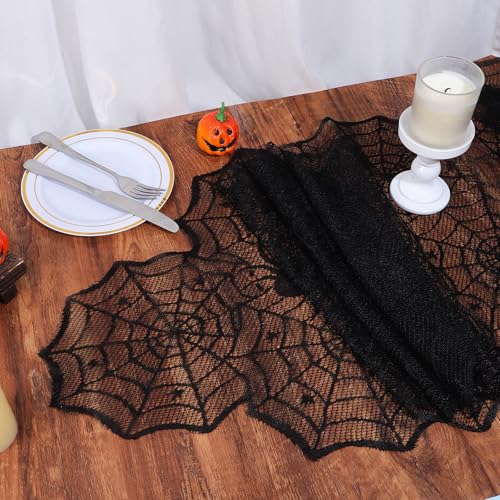 - 【Unique Design】 The Spider Web Table Runner features a soldering iron edge sewing process with exquisite edges, perfect for dressing up any table for Halloween. The black lace design enhances the spooky ambiance, making it ideal for Halloween parties, birthdays, and festive occasions. The intricate spider web pattern adds a creepy touch to your decorations.