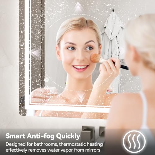 - 【Anti-Fog Mirror】Bathroom mirror is equipped with an anti-fog pad, which has a defog function; you don't have to worry about fogging up affecting makeup or changing clothes. It's waterproof up to IP44, which is very suitable for a humid place