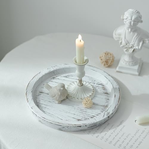 - Material and Size: This vintage candle plate made of high quality paulownia wood, with beautiful organic wood grains, lightweight and durable. The size of round tray is 11.02"L x 11.02"W x 0.98"H, perfect size to put on home table hold your favorite candles or other small items keep your countertop organized.
