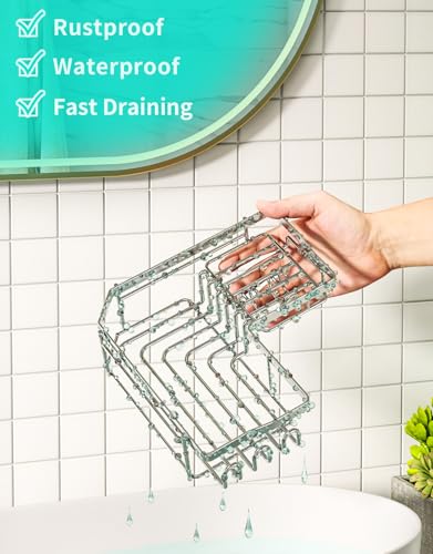 - [Bathroom Caddy Corner Waterproof & Fast Draining]: Hollow and ventilated design of bathroom corner shelves no drilling to make water drain fast, keep your bath products on the bathroom storage shelf dry and clean. The grid of shower corner shelf no drilling can prevent some small objects from falling