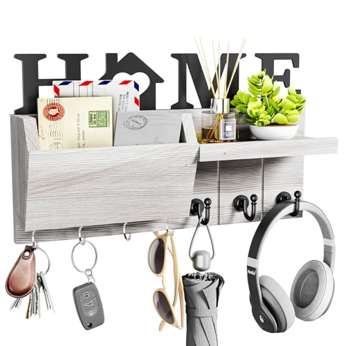 - [Warm Design & Decorative House]: Wall key holder is 35 x 14 x 9cm in size when mounted on the wall. The shelf with hooks on the wall is not only a key sorter. The key hooks for wall unique and attractive design with home letters will add a warm atmosphere to your home, which can be paired with modern or rustic home style, simple and stylish. key racks for wall make life more convenient