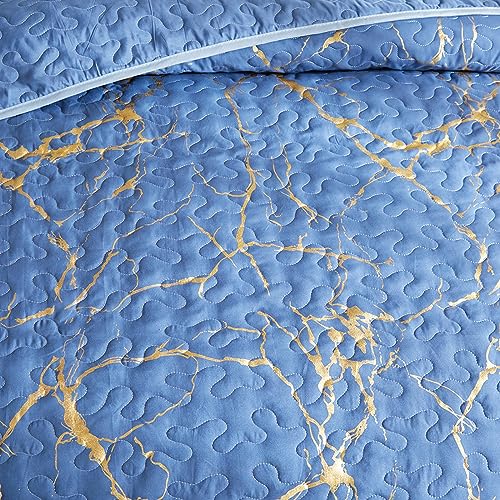 - 【Elegance & Aesthetics】This luxury blue bedspread with gold marble printed is a good choice for room decor, it easily fits well with any bedroom style, give your room a fresh beautiful look. Unique marble texture adds aesthetics to your room, with the golden texture, weave you a golden dream all night long.