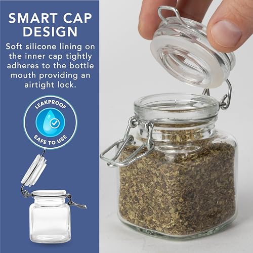 - KEEPS INGREDIENTS FRESH – Each small glass jars with lids features an airtight clip lock lid with a silicone seal, keeping your ingredients fresher for longer. Say goodbye to stale spices and enjoy the full flavour of your herbs, spices, and seasonings with these premium mini clip top glass jars.