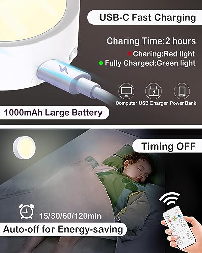 - 【RECHARGEABLE & LONGER RUNTIME】Our rechargeable under cabinet puck lights use only Grade A+ Lithium-ion battery which has more energy density and mobile grade battery cycle life. The magnetic tap light for bedroom built-in 1000mAh battery provides 8hrs of continuous lighting. With the convenience of USB-C technology, you can fully recharge these wireless puck lights with remote control in just 2hrs, ensuring you always have reliable and long-lasting lighting.