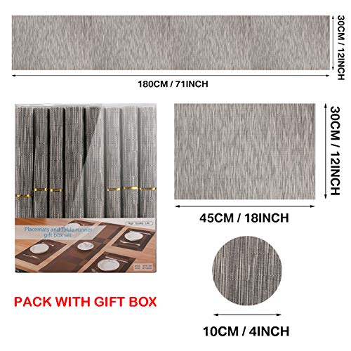 - DIMENSIONS AND PACKAGE CONTENTS: The set includes 6 placemats, each measuring 45x30cm; 6 coasters with a diameter of 10cm; and 1 table runner sized at 180x30cm, providing full coverage and coordination for your table setting