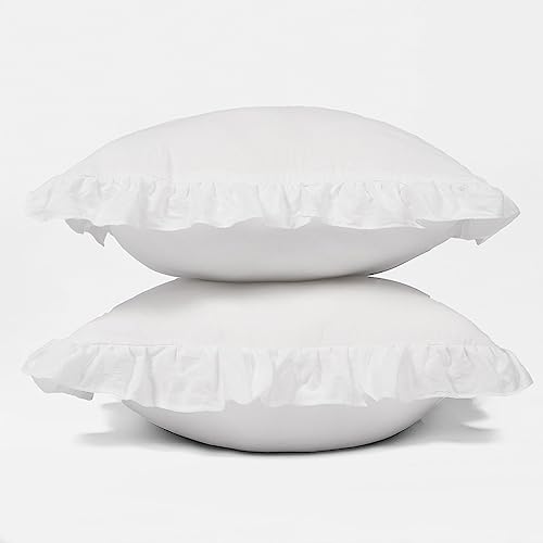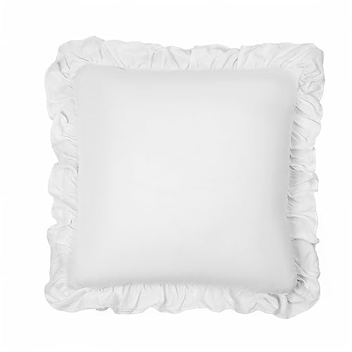 - Colour: White Cushions: Frilly styled white fluffy cushions in faux linen are comfy, soft cuddle cushions for living room sofas or as decorative throw pillows.