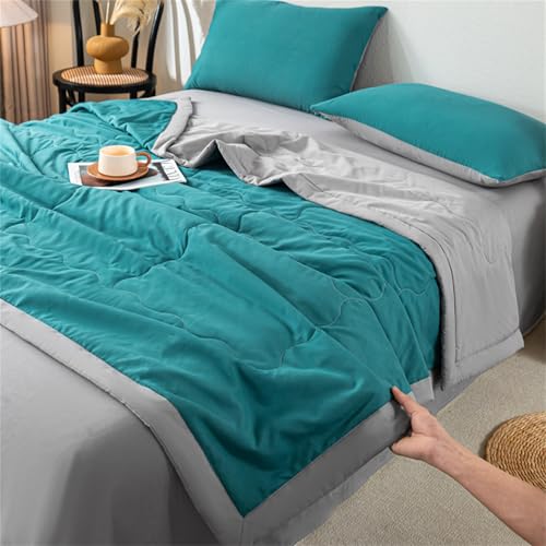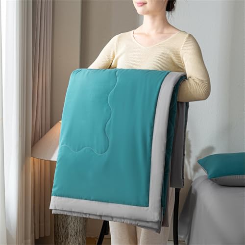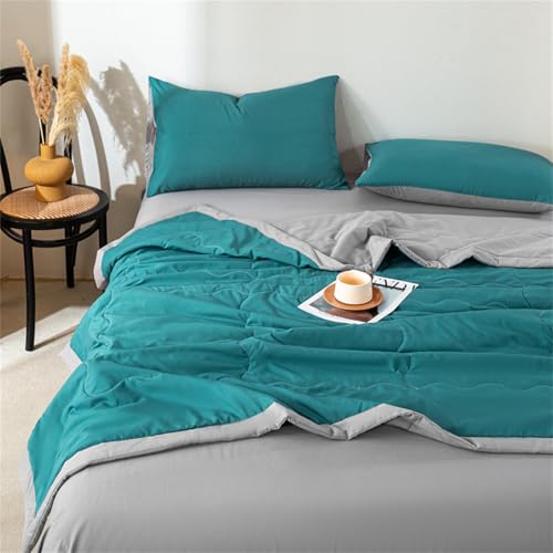 Highdi Two-color Quilted Bedspreads, Lightweight Bedspread Coverlet for All Season, Soft Bed Throws Quilted Bedspreads, Washable Summer Patchwork Quilt King Single Double (Teal,150x200cm)
