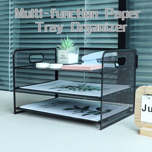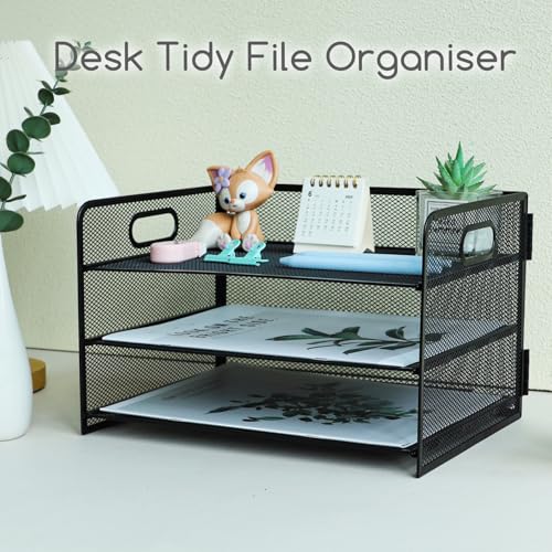 - 【Sliding Letter Trays】This 3 Tier A4 Mesh in Tray Office Desk Tidy File Holder come with 3 Sliding tray, and the sliding trays can be taken out to sort through documents. The handle at the top also means you could move it around if you needed to