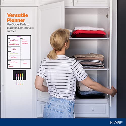 - Adheres To Any Surface: Strong magnetic backing keeps this whiteboard weekly planner from budging off your fridge; whereas 8 double-sided sticky pads help you stick it securely on any non-metallic surface like door & window