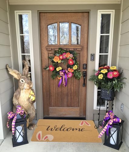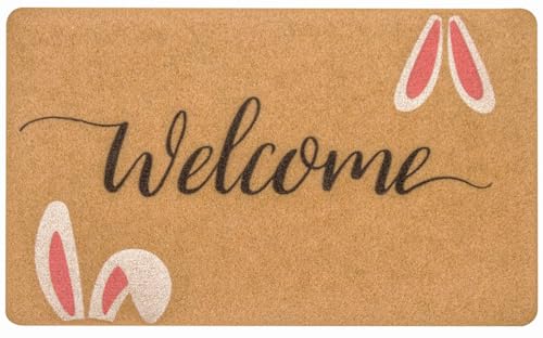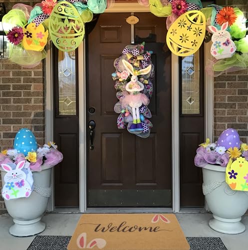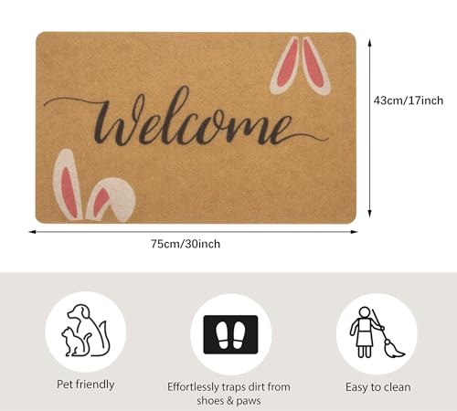 - 【Easter Welcome Doormat Size】- Bunny Door mat measurement is 43*75cm/17x 30inch. The pile thickness is 0.5" inches. The non-slip PVC backing provides grip support for your floors to prevent slipping.