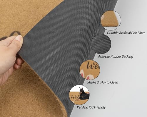 - 【Artificial Coir Material】- Outdoor doormat is made from artificial coir fiber, durable and tough, no hair loss, can withstand high-traffic areas.Outdoor Indoor Welcome Mats are durable and pet friendly. Tightly woven coir traps dirt, debris, and moisture while upgrading your front door.