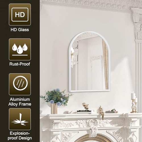 - ❤Brushed Metal Frame: Modern arched bath wall mirror with elegant decorative aluminum frame and unique arch, made of strong and rustproof aluminum alloy frame, special anti-corrosion mirror treatment, designed for long time use, fit your home design style, add a stylish high quality mirror to your home.