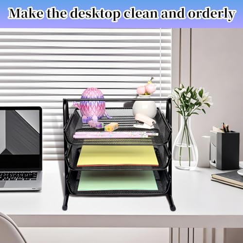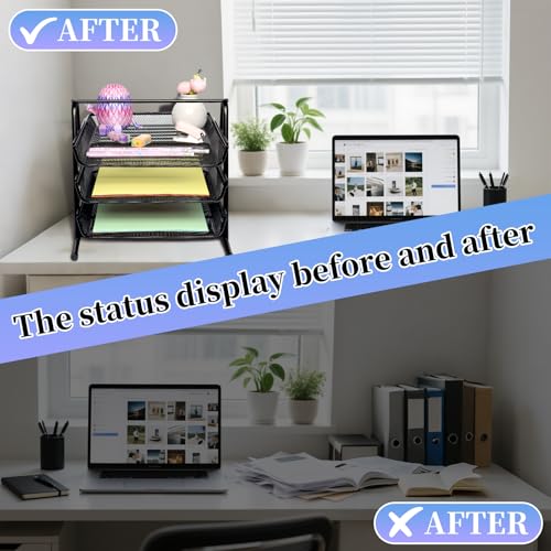 - STACKABLE DESIGN: the trays effortlessly slide in and out quietly and smoothly,3-tier metal mesh letter tray organiser perfect for office documents, magazines, and files with modern styling
