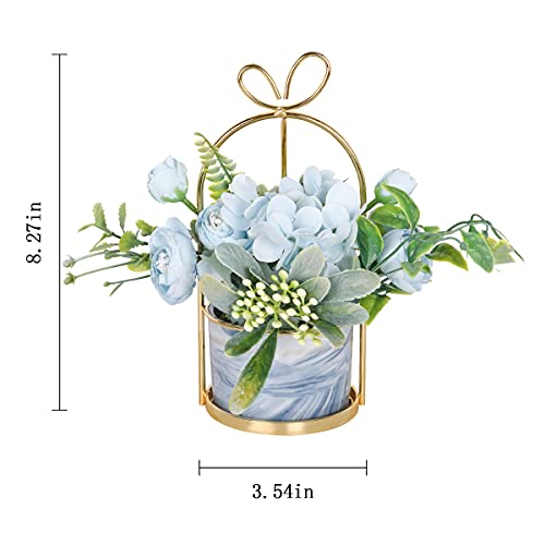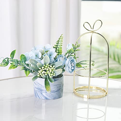 - [Elegant Flower Vase] – The perfect combination of specially designed flower pot and stylish flower arrangement, this peony flower with ceramic vase set can be applied to almost all decorative styles. In conjunction with the metal wrought iron craft frame, this mini potted flower is not just a home decor, but also can be a hanging flower potted decoration. You can keep them together or separately to bring a natural and elegance look in different style!