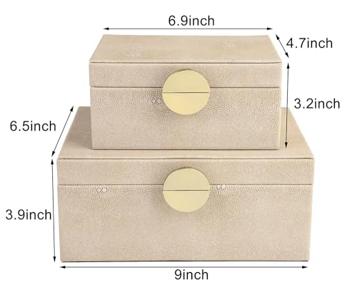 - Useful boxes for decorative purposes and do an excellent job, functional and decorative, very glamorous decor. Set of 2 nested Boxes size: L: 9 x 6.5 x 3.9inches S: 6.9 x 4.7 x 3.2 inches.