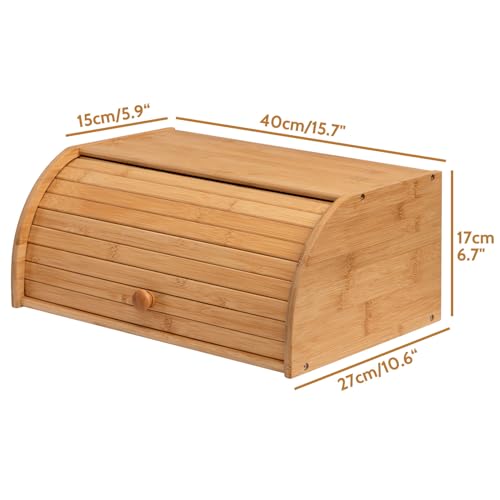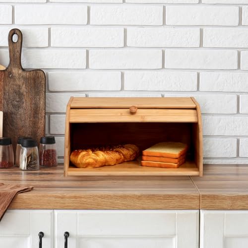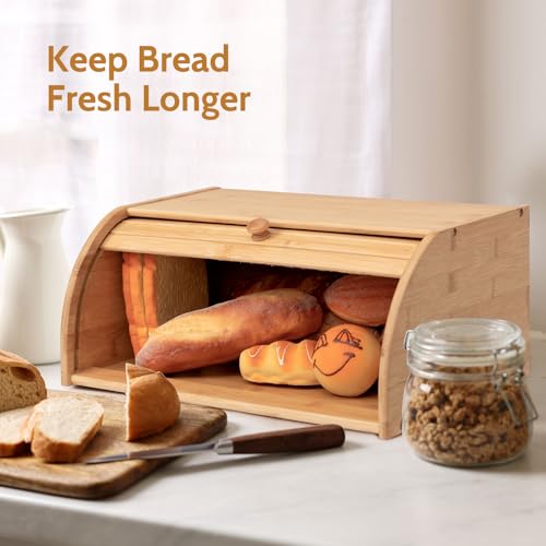 - Sleek & Functional Design:Featuring a unique semi-circle slide lid, this breadbin blends elegance and practicality. The minimalist roll-top design not only adds charm to your kitchen but also seals in freshness by maintaining optimal airflow. Perfect for modern or rustic decor