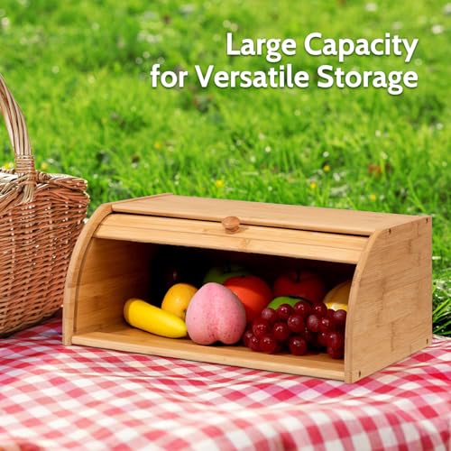 - Generous Capacity, Compact Footprint:Measuring 15.7" W/39.8cm x 10.5" D/26.6cm x 6.7" H/17cm, this breadbox container holds large loaves or multiple smaller breads without overcrowding your space. Ideal for countertops, kitchens, dining tables, or even outdoor use (e.g., garden parties)