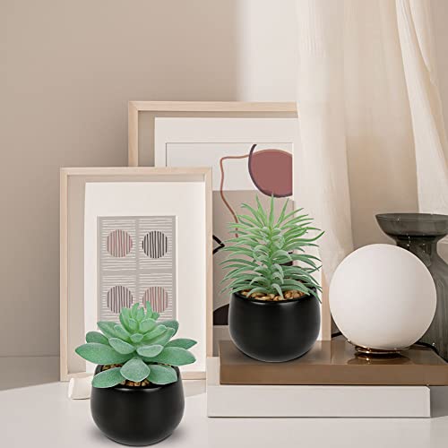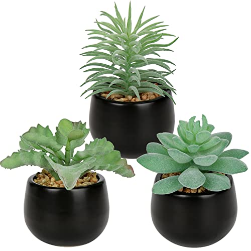 - 【Faux Plants with Pots】This set of 3 artificial succulent plants is ideal for adding a dash of refreshingly modern style to your home, office, or party décor. Black ceramic pots are pre-filled with decorative rocks and succulents to give you a truly classy decorative accent fit for any space and season.