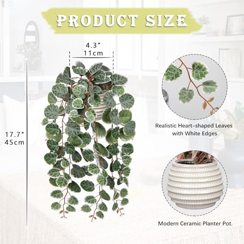- 【Size of Fake Trailing Plants】The ceramic plant pot is 4.3"/11CM in diameter. The artificial potted plant measures approximately 17.7"/45CM tall from the bottom to the top of the pot. These string of hearts plants are an attractive addition to any indoor or outdoor decoration.