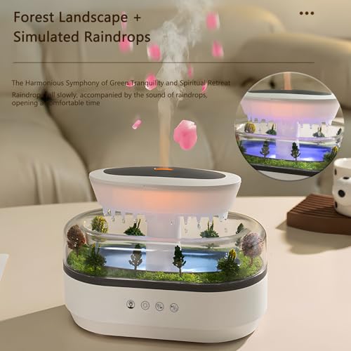 - ✅【Multi-Function Device To Relax Body And Mind】This Cloud & Rain Essential Oil Diffuser for essential oils is a 4-in-1 product that combines humidification, aroma diffusion, night light and ambient light. The aroma diffuser also features a carefully designed mini landscape. Delicate trees and a gentle water feature, surrounded by soft LED lighting, create a seductive atmosphere and instantly transport you to a tranquil natural environment.