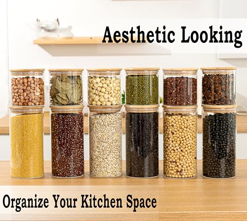 - PACKAGE INCLUDES- 12pcs of borosilicate glass jars with bamboo lids. Labels and chalk are also included in set. 6pcs of 800ml and 6pcs of 1200ml, this pack is large enough to cater all needs of customers.