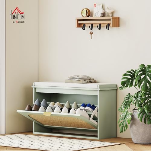 - Boho style: Rattan accents on the door and light green frame bring a cosy feel to your hallway, making this shoe bench a charming feature for a welcoming home