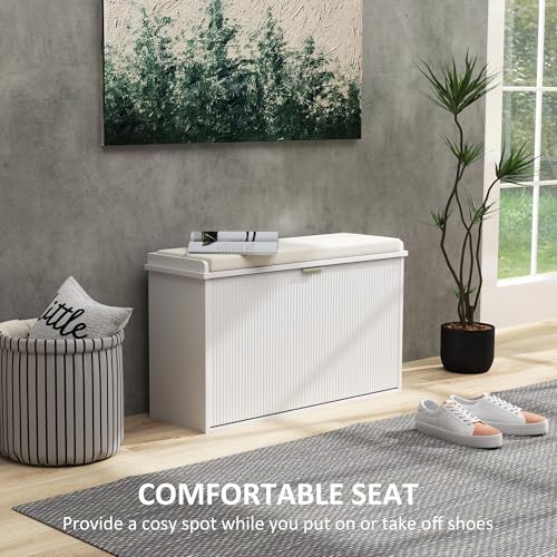 - Padded cushion seat: Sit down on this shoe rack bench when putting shoes on or taking them off.