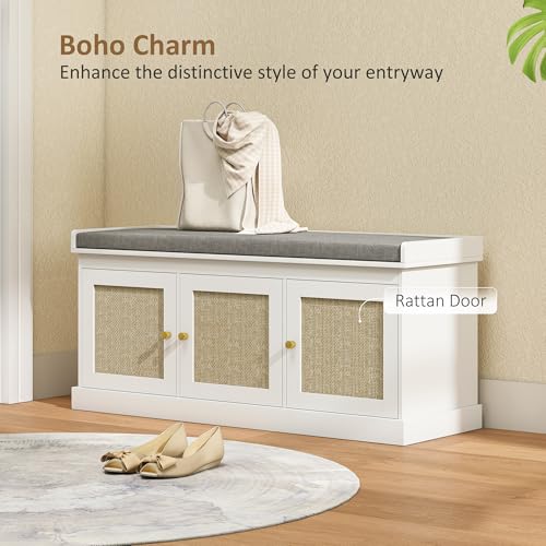- Boho aesthetic: Enhance your space with this shoe storage bench's woven rattan doors, adding an artistic touch to entryways or bedrooms, suitable for style-conscious individuals