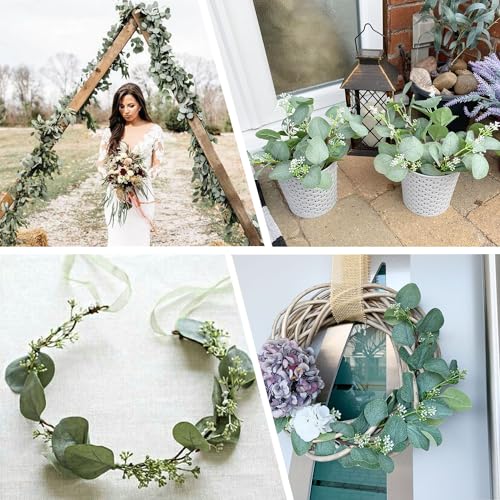 - MULTIFUNCTIONAL ACCESSORIES:The cute eucalyptus seeded stems are suitable for many occasions’ decor,you can use these green eucalyptus leaves stem to make green wreath,wedding bouquet with other flowers,garlands,dining table decor,wedding centerpieces,mantels,shelves,coffee table arrangement.These artificial seeded greenery eucalyptus stems will open up more possibilities for your home or wedding decoration.