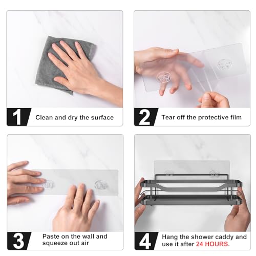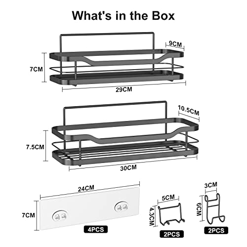 - What You Get: 2 x Shower Caddies, 4 x Adhesives, 4 Movable Hooks. Please contact us if you meet any problems.