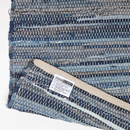 - Expertly woven on traditional looms, Homescapes’ denim rugs are handwoven in a chindi design, also known as rag rugs, chindi rugs include various shades in an uneven striped pattern resulting in a truly unique floor rug.