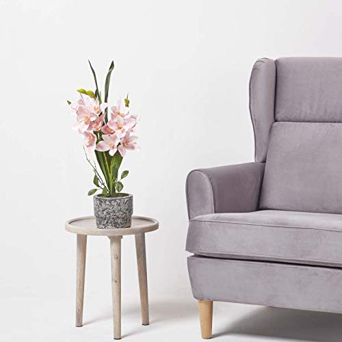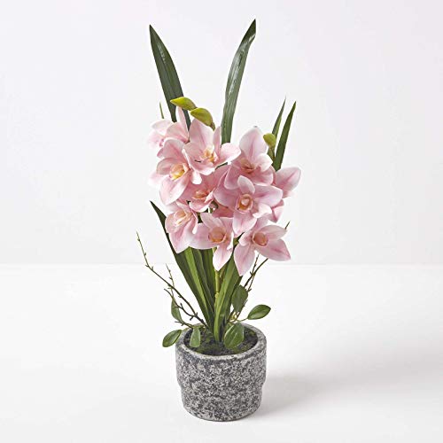 - Pink artificial orchid from Homescapes. Potted in a dark grey cement pot, designed to replicate the popular Cymbidium orchid species. Total Height: 58 cm Tall. Pot Height: 13 cm. Colour: Pink.