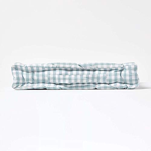 - A blue and white traditional style gingham floor cushion with 100% cotton cover which is yarn dyed (not printed) to ensure lasing colour, a super soft and durable material that will not fade with use.