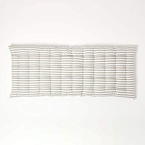 - LUXURY BENCH CUSHION: Get comfortable with our expertly handmade 100% cotton garden bench cushion for outdoor or indoor use — Britain's premium bench seat cushion, loved by millions for 20+ years. Included: 1 x Grey & White Striped 2 seater bench cushion (108 x 42 x 5 cm)