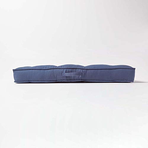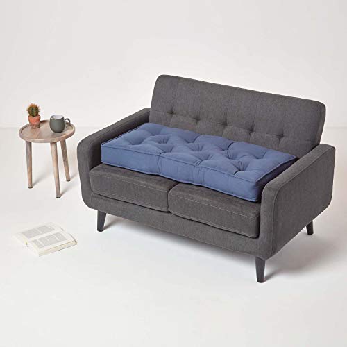 - Luxury 100% cotton 2 seater booster cushion to fit standard 2 seater sofas with space for sofa back cushions, lumbar support cushions and scatter cushions. Size: W 100 cm x D 48 cm x H 10 cm (39″ x 18″ x 4″). Colour: Navy Blue