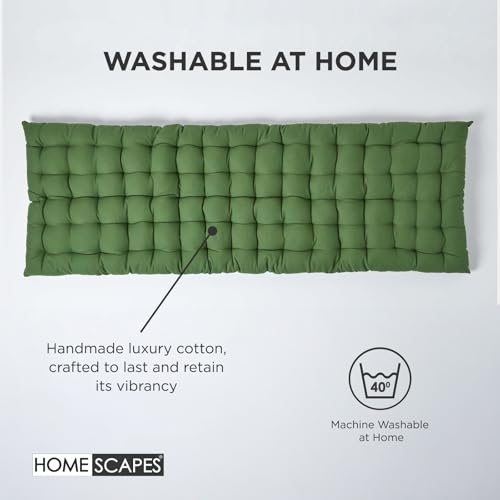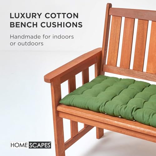 - LUXURY BENCH CUSHION: Get comfortable with our expertly handmade 100% cotton garden bench cushion for outdoor or indoor use — Britain's premium bench seat cushion, loved by millions for 20+ years. Included: 1 x Olive Green 2 seater bench cushion (108 x 42 x 5 cm)