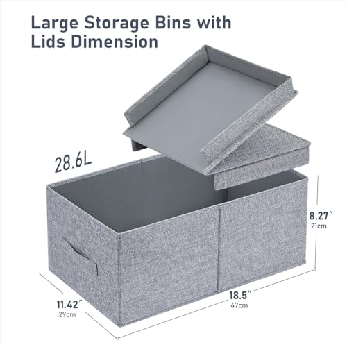 - < Large Capacity & Versatile Storage Box > Set of 2 linen boxes measuring 47 x 29 x 21 cm, 28.6 litre. providing ample storage space for storing clothes, towels, toys, books, snacks and scattered items, keep the room clean and orderly