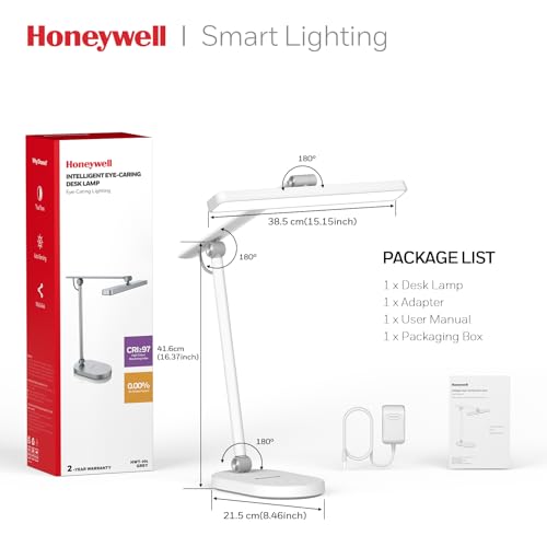 - 【Automatic Dimming】: The LED desk lamp for desk features an ambient light sensor that automatically detects surrounding brightness and adjusts the light level to be comfortable for your eyes. This Honeywell eye-caring desk lamp provides a comfortable lighting environment for working, reading, and studying at home.