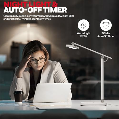 - 【Night Lighting & Auto-Off Timer】:The Honeywell H4 desk lamp features a one-touch night light function, adjustable to 3000K and 10% brightness, perfect for creating a cozy environment for children and the elderly. Additionally, the timer function automatically turns off the lamp after 60 minutes, saving energy.
