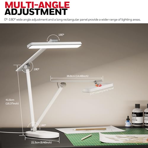 - 【Adjustable Desk Lamp & Metal Base】: The foldable desk lamp office features an adjustable head and arm with a four-axis design, allowing you to freely adjust the angle. The lamp head moves up/down 180° and rotates side to side 270°, enabling you to direct light precisely to wherever you need. The desk lamp is perfect for any office space, or even other places that you want. Additionally, the sturdy metal base keeps the lamp stable on your desk without any wobble.
