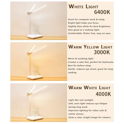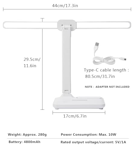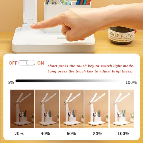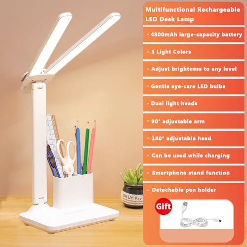 - Hongmeru Dual Swing Arm LED Desk Lamp with 4800mAh Rechargeable Battery, 3 Light Modes, Adjustable Brightness Dimmable Table Lamp, Pen Holder & Touch Control – for Desk, Bedside, Study or Office Use