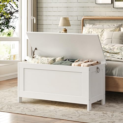 - Everything in best order: chest dimensions 76 x 48 x 40 cm (W x H x D). Under the generous bench there is a spacious compartment for cushions, pyjamas or books. These chests take up little space but offer you plenty of storage space to keep your items