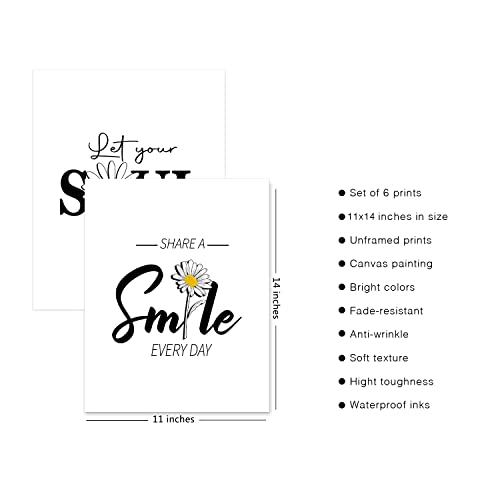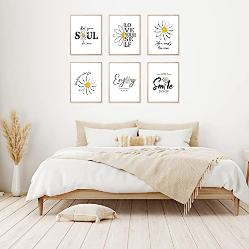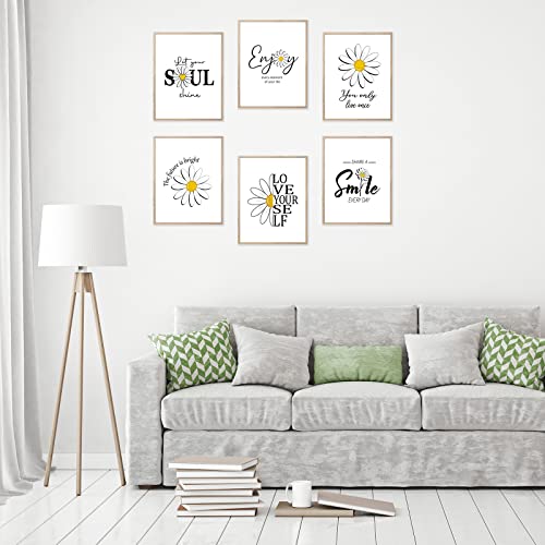 - DESIGN CONCEPT – Inspirational poster design unframed pictures set of 6. motivational wall art canvas prints wall decoration created with Daisy and positive energy quotes & sayings elements. Suitable for office, bedroom, study and other wall decoration.