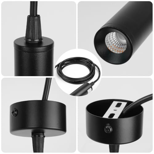 - Cable Length: The hanging cable is adjustable, with a maximum length of up to 200 cm to fit any ceiling. The black cylindrical shape, with modern and sophisticated lines, adds elegance to the room. Perfect for kitchens, bedrooms, living rooms, restaurants, cafes, etc. add more fashion elements to your house