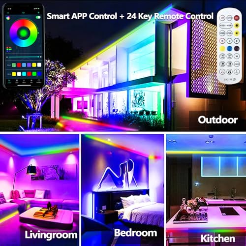 - 【Music Sync Led strip lights】The APP plays your favorite music and Outside Led Strips' colors sync with the music.It is an ideal decoration for all kinds of holidays and party, such as birthday party decorations and Christmas party decorations