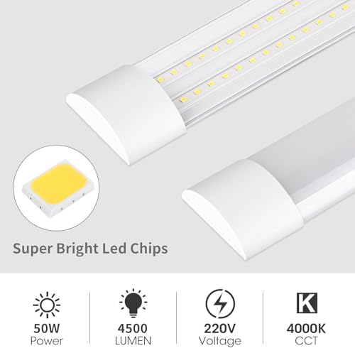 - 1.High Brightness:This 50W LED batten light with 4500 lumens output, 4000K natural white bright light. Made of plastic body and plastic cover.